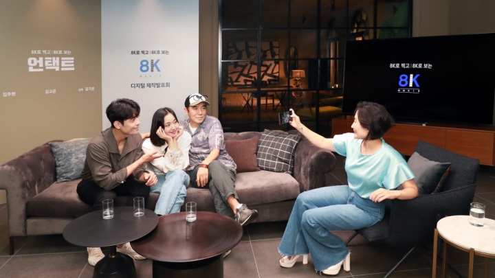 ▲ 삼성전자의 8K 영화 ‘언택트’ 제작발표회 현장(왼쪽부터 배우 김주헌, 김고은, 김지운 감독, 진행자 박경림)