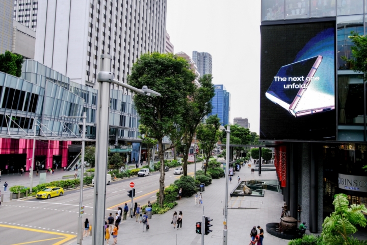 ▲ 싱가포르 상업 중심지 오차드에 위치한 쇼핑센터 로빈슨(Robinsons)에 설치된 ‘갤럭시 Z 폴드2’ 옥외광고