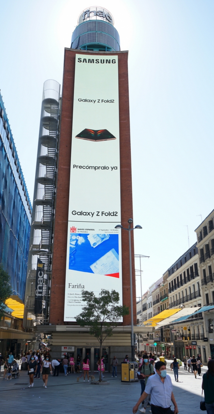 ▲ 스페인 마드리드 까야오 광장(Plaza del Callao)에서 운영 중인 ‘갤럭시 Z 폴드2’ 옥외광고