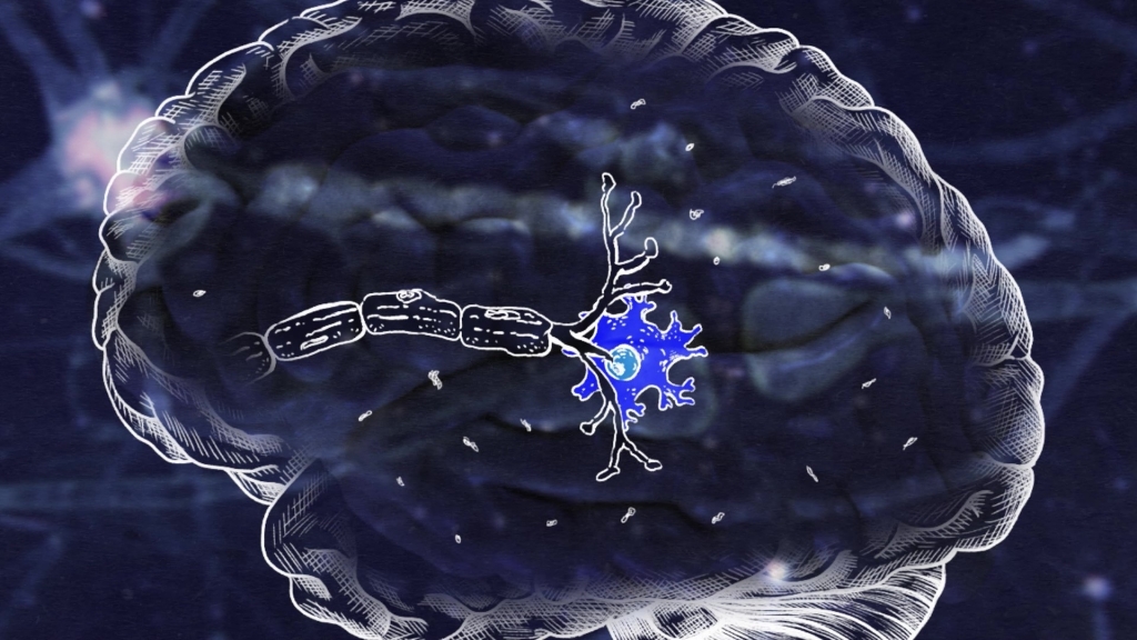 ▲ 뇌 속 면역세포가 건강한 시냅스를 공격하는 이상 현상을 표현한 그래픽. KAIST 정원석 교수는 면역 기능을 담당하는 교세포의 포식작용을 연구한다.