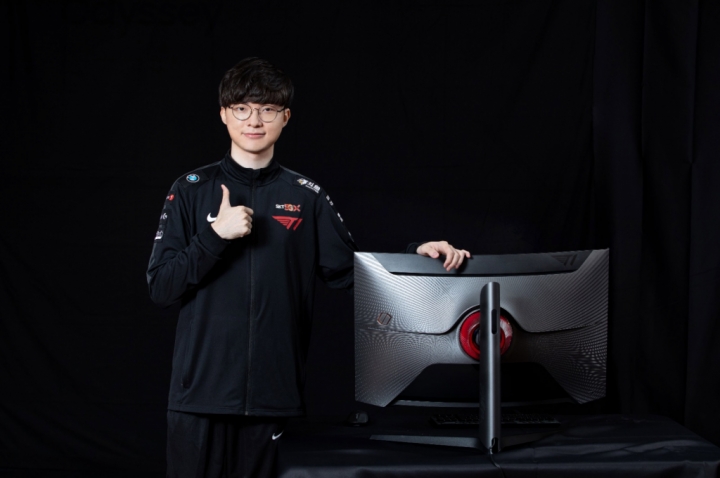 ▲ 게이밍 모니터 ‘오디세이 G7 T1 페이커 에디션’과 프로게이머 페이커