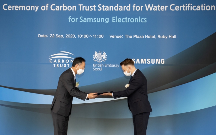 반도체 생산시설과 연구소가 있는 삼성전자 화성캠퍼스는 22일 서울 플라자호텔에서 열린 영국 카본 트러스트(Carbon Trust)의 인증 수여식에서 조직단위 ‘물발자국’ 인증을 수여 받았다.