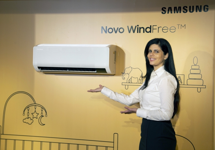 ▲ 삼성전자 브라질 법인 직원이 무풍에어컨 신제품을 소개하고 있다.