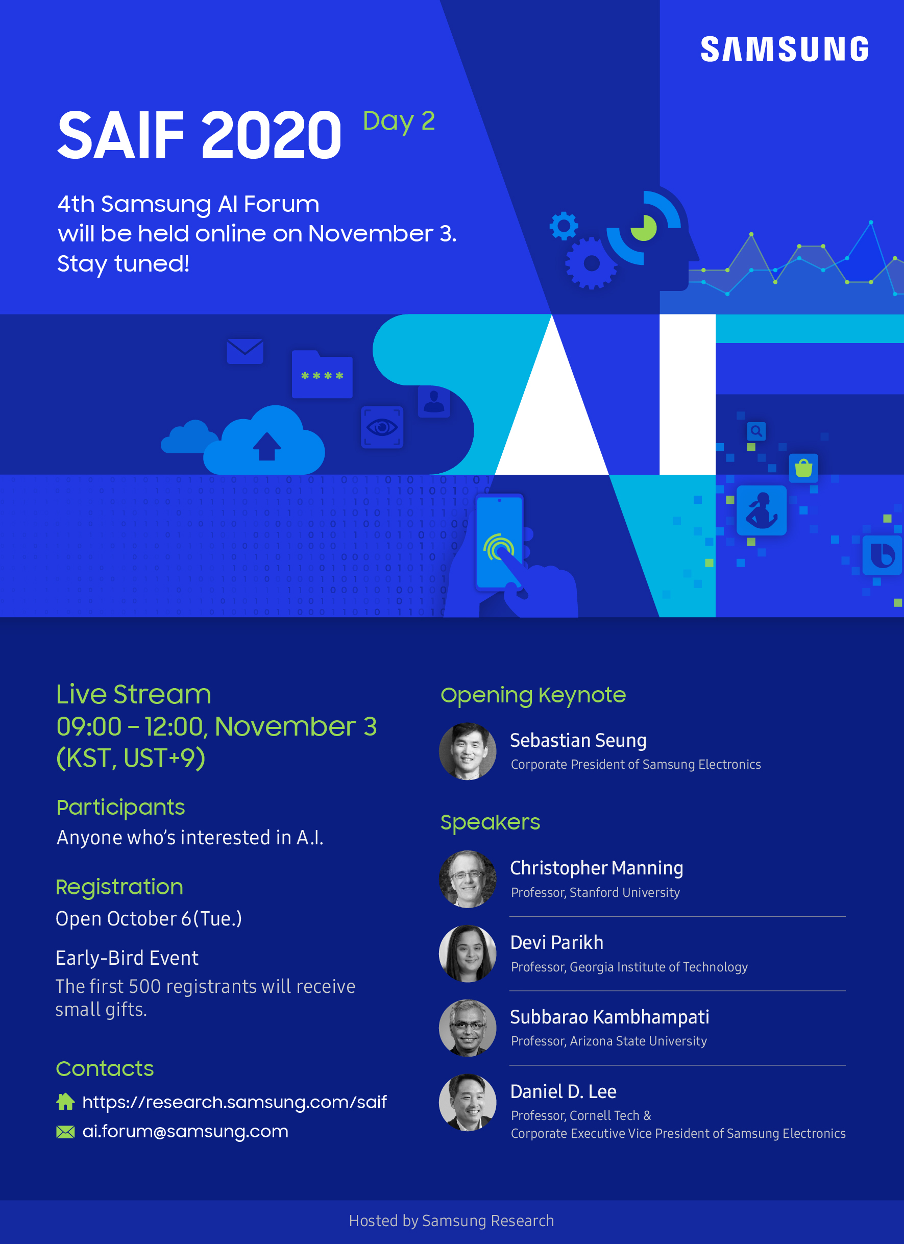 삼성전자가 오는 11월 2일부터 3일까지 ‘삼성 AI 포럼 2020’을 개최한다.
