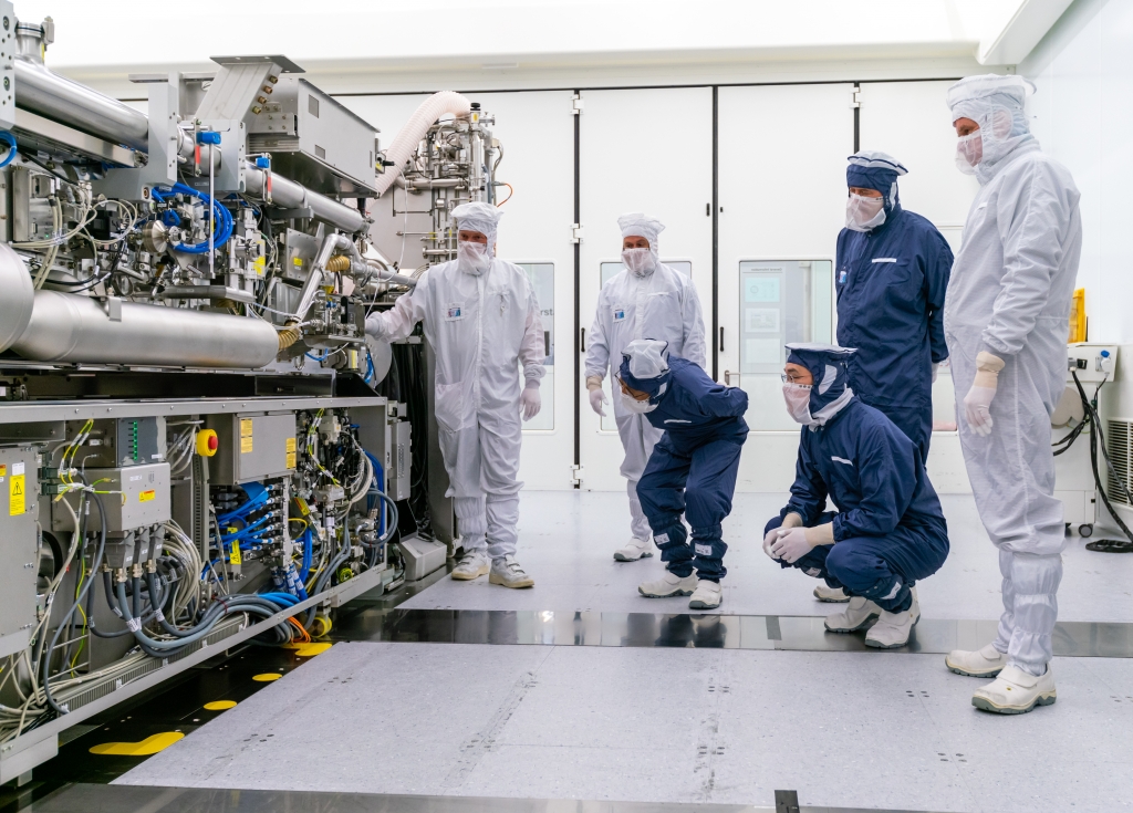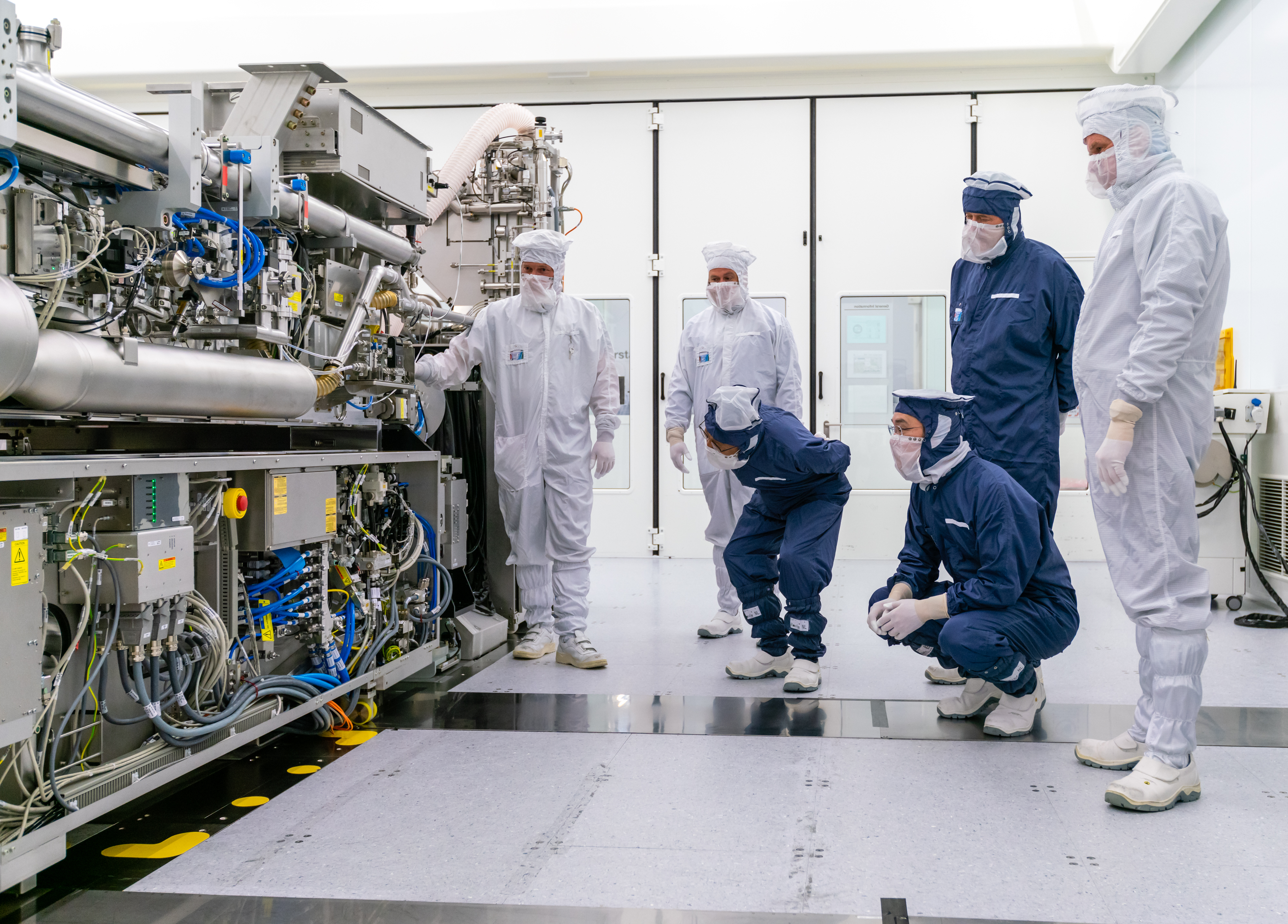 ▲ 이재용 삼성전자 부회장이 13일(현지시간) 네덜란드 에인트호번에 위치한 ASML 본사를 찾아 EUV 장비를 살펴보는 모습. 왼쪽부터 ASML 관계자 2명, 김기남 삼성전자 DS부문장 부회장, 이재용 삼성전자 부회장, 피터 버닝크(Peter Wennink) ASML CEO, 마틴 반 덴 브링크(Martin van den Brink) ASML CTO