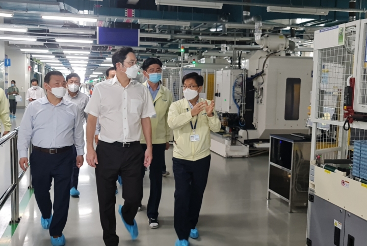 ▲ 이재용 부회장이 20~21일 베트남 하노이 인근에 위치한 삼성 복합단지를 찾아 스마트폰 생산공장 등을 점검하는 모습