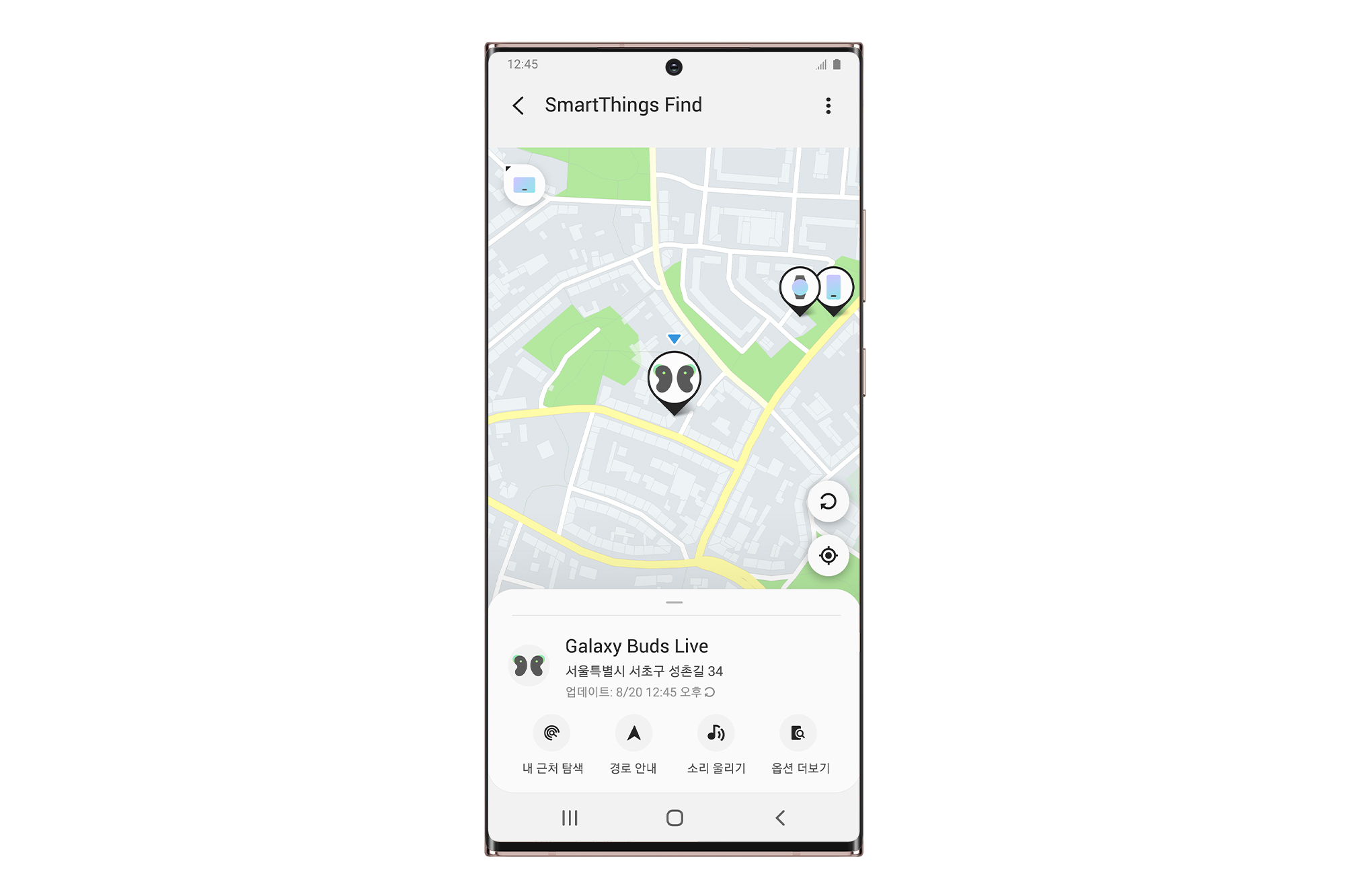▲ 찾으려는 기기의 위치 정보가 지도 위에 표기돼 시각적 편의성을 높인 점이 ‘스마트싱스 파인드’의 특징이다.
