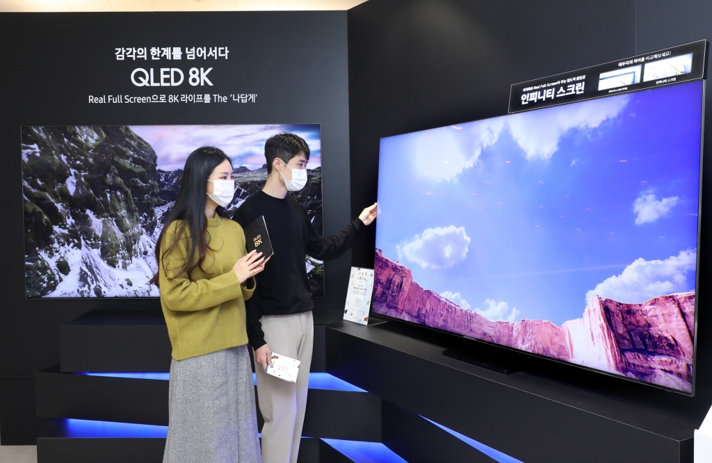 ▲ 삼성전자 모델이 ‘나답게 스튜디오’ TV존에서 ‘QLED 8K’의 인피니티 스크린을 체험하고 있다.