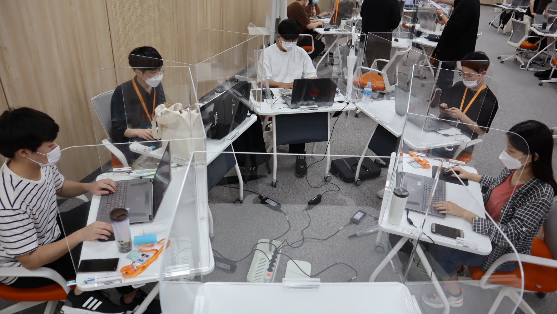 ▲ 삼성청년SW아카데미 광주캠퍼스의 교육생들이 함께 협업 프로젝트를 진행하고 있다.
