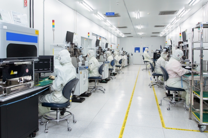 ▲ 네트워크 장비 기업 ‘RFHIC’ 직원들이 반도체 부품의 전극을 미세 금속선으로 연결하고 있다.