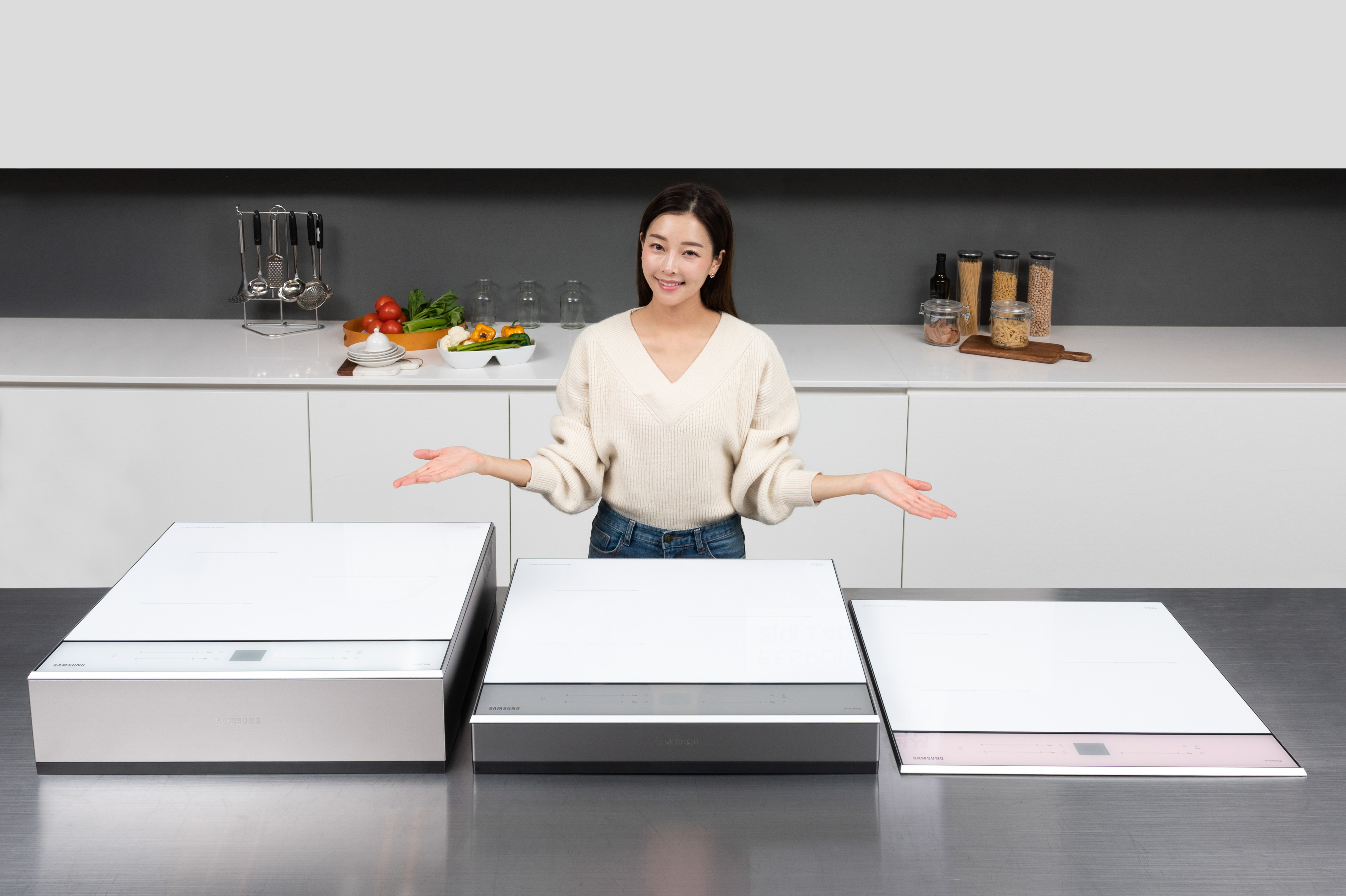 ▲ 삼성전자 모델이 수원 삼성전자 디지털시티 프리미엄하우스에서 차별화된 디자인과 국내 최고 수준의 화력을 갖춘 ‘삼성 비스포크(BESPOKE) 인덕션’ 신제품을 소개하고 있다.