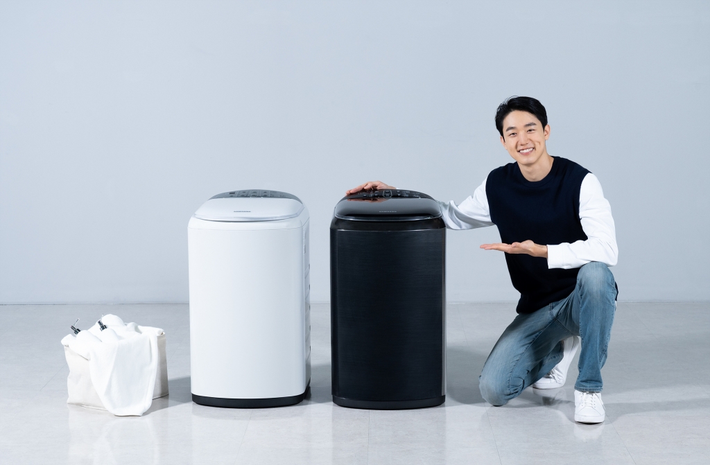 ▲ 삼성전자 모델이 수원 삼성 디지털시티에서 소형 세탁기 신제품을 소개하고 있다.