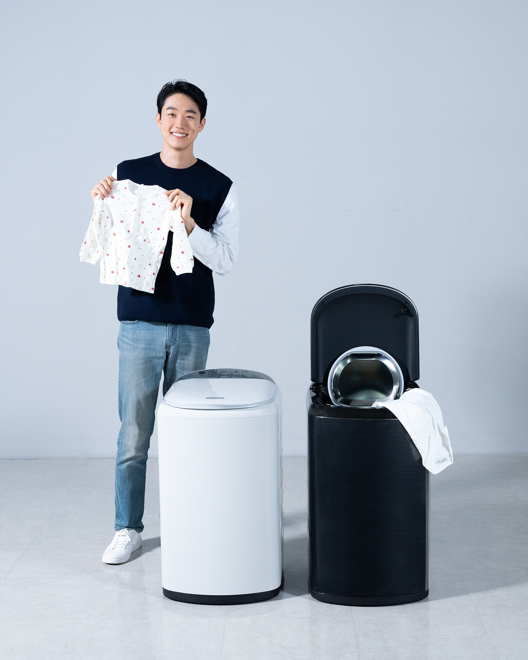 ▲ 삼성전자 모델이 수원 삼성 디지털시티에서 소형 세탁기 신제품을 소개하고 있다.