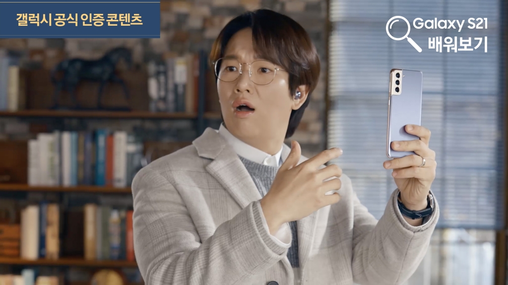 ▲ 갤럭시 공식 인증 디지털 체험 콘텐츠 ‘갤럭시 S21 배워보기’에서 방송인 장성규가 ‘갤럭시 S21’의 실 사용기를 설명하는 모습
