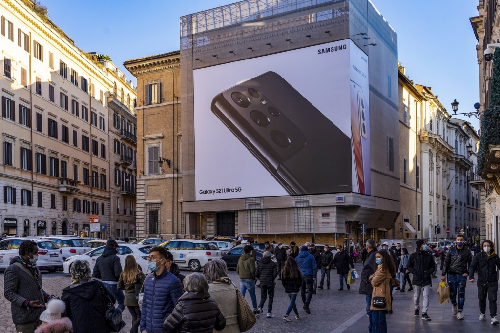 ▲ 이탈리아 로마 스페인 광장(Piazza di Spagna)에 설치된 ‘갤럭시 S21’ 옥외 광고 모습