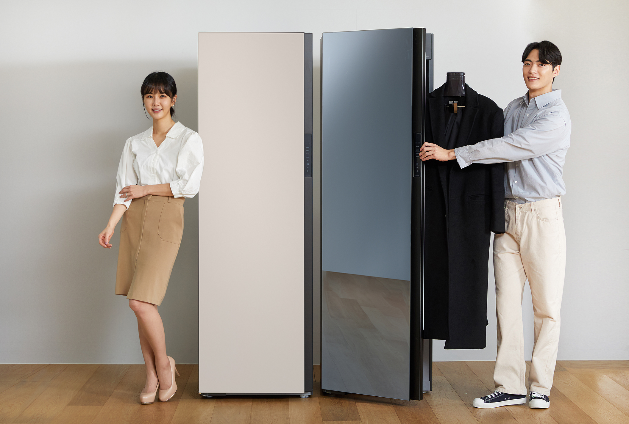 ▲ 삼성전자 모델이 수원 삼성전자 디지털시티에서 감각적인 디자인과 강화된 인공지능(AI) 기능을 갖춘 의류청정기 신제품 ‘삼성 비스포크(BESPOKE) 에어드레서’를 소개하고 있다.