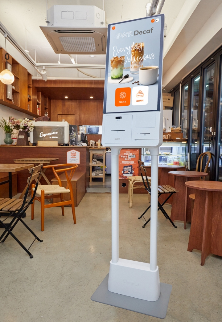 삼성 키오스크는 식당, 카페, 약국, 편의점, 마트 등에서 상품 선택에서부터 주문, 결제까지 가능한 올인원(All-in-one) 제품이다.