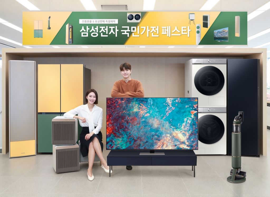 삼성전자는 ‘Neo QLED’ TV와 ‘비스포크(BESPOKE)’ 콘셉트의 냉장고·김치냉장고·세탁기·건조기 등 총 12개 품목, 64개 인기 모델을 ‘국민가전’으로 선정하고, 행사 대상 제품을 구매하는 고객에게 최대 80만원 상당의 풍성한 혜택을 제공한다.