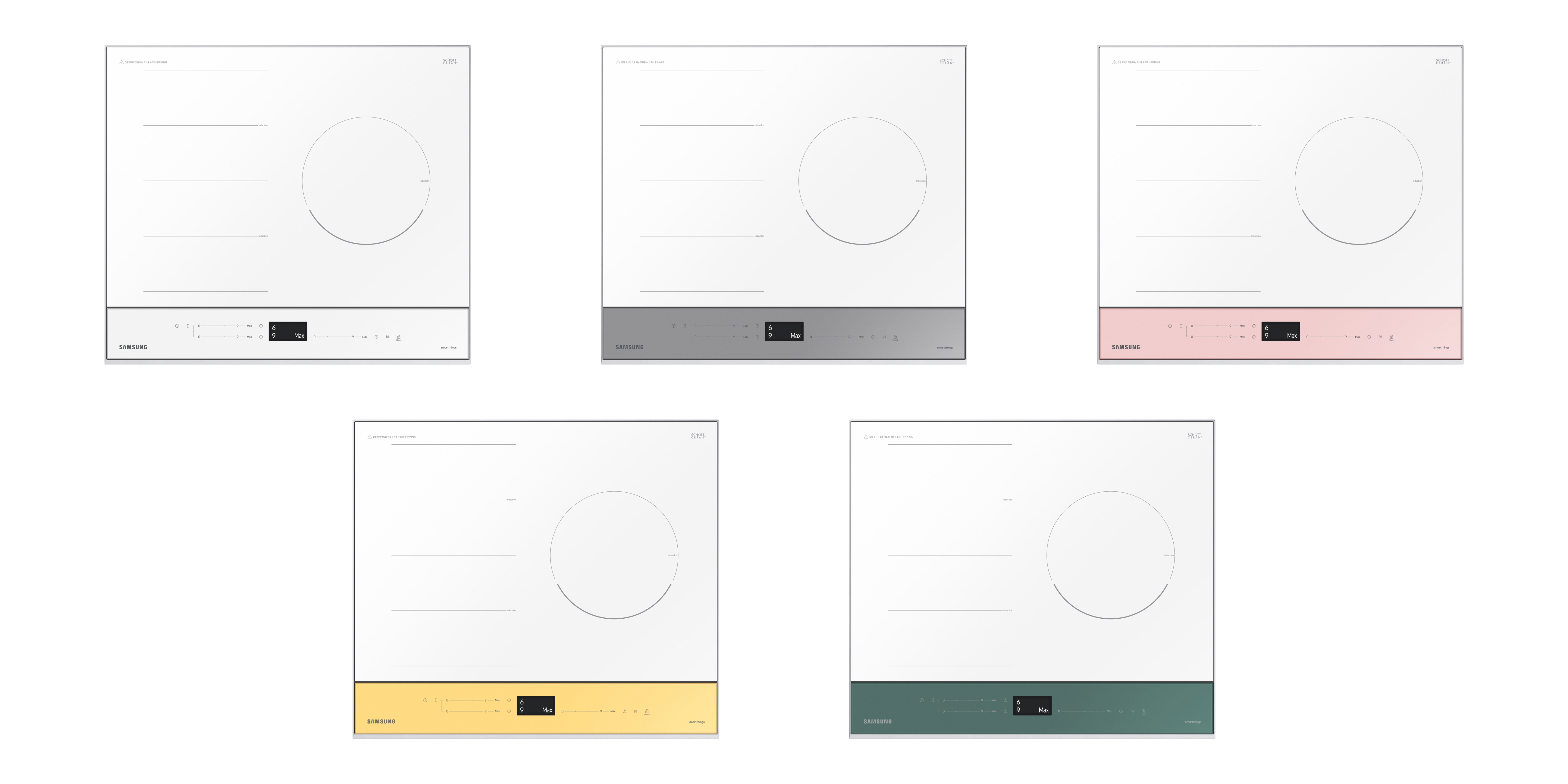 삼성 비스포크 인덕션은 화이트 세라믹 글라스 상판에 소비자 취향이나 주방 인테리어에 따라 조작부의 색상을 다양하게 선택할 수 있는 ‘듀얼 글라스 디자인’이 적용된 제품이다.