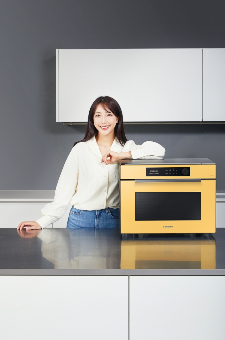 ▲ 삼성전자 모델이 수원 삼성전자 디지털시티 프리미엄하우스에서 개인 맞춤형 요리를 즐길 수 있는 ‘비스포크 직화오븐 AI’ 신제품을 소개하고 있다.
