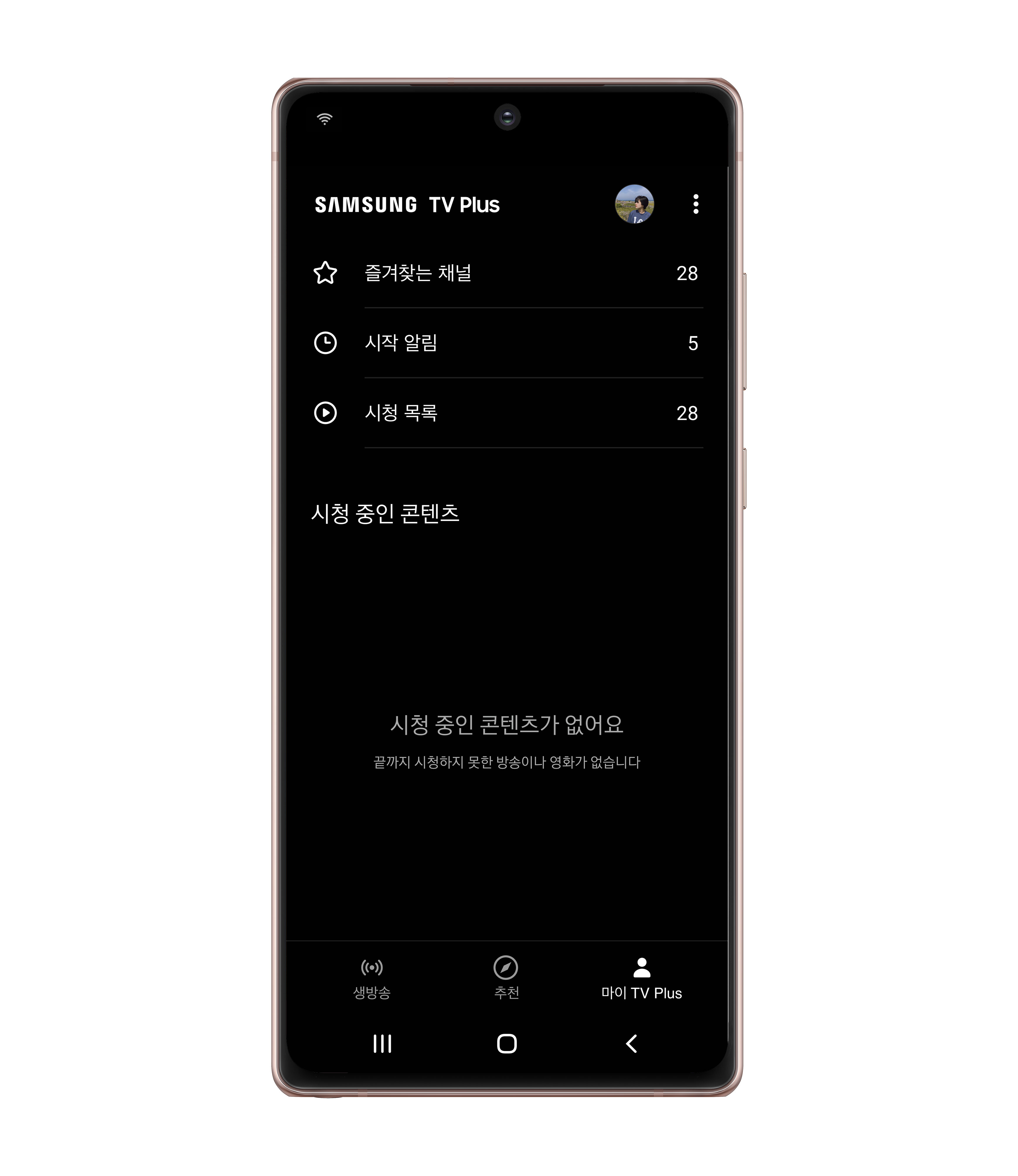 ▲ 삼성 TV 플러스 모바일 앱 내 ‘마이플러스’탭 실행 화면