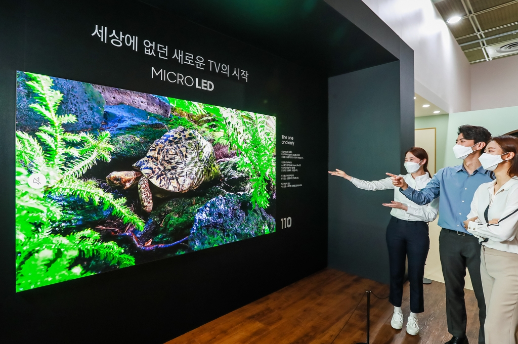 ▲ 서울 코엑스에서 열린 ‘월드IT쇼 2021’ 삼성전자관에서 관람객이 현존 최고의 디스플레이 기술이 집약된 마이크로 LED의 화질을 체험하고 있다.