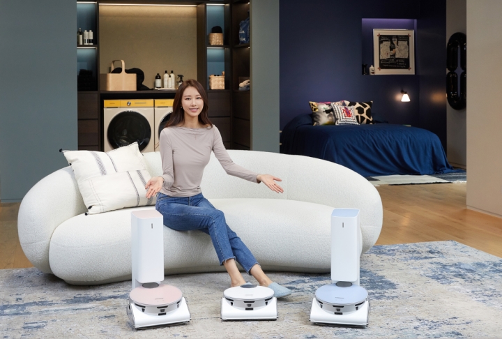 ▲ 삼성전자 모델이 삼성디지털프라자 강남본점에서 인공지능(AI) 기술로 사물인식 능력과 주행성능을 대폭 개선한 로봇청소기 ‘비스포크 제트 봇 AI’를 소개하고 있다.