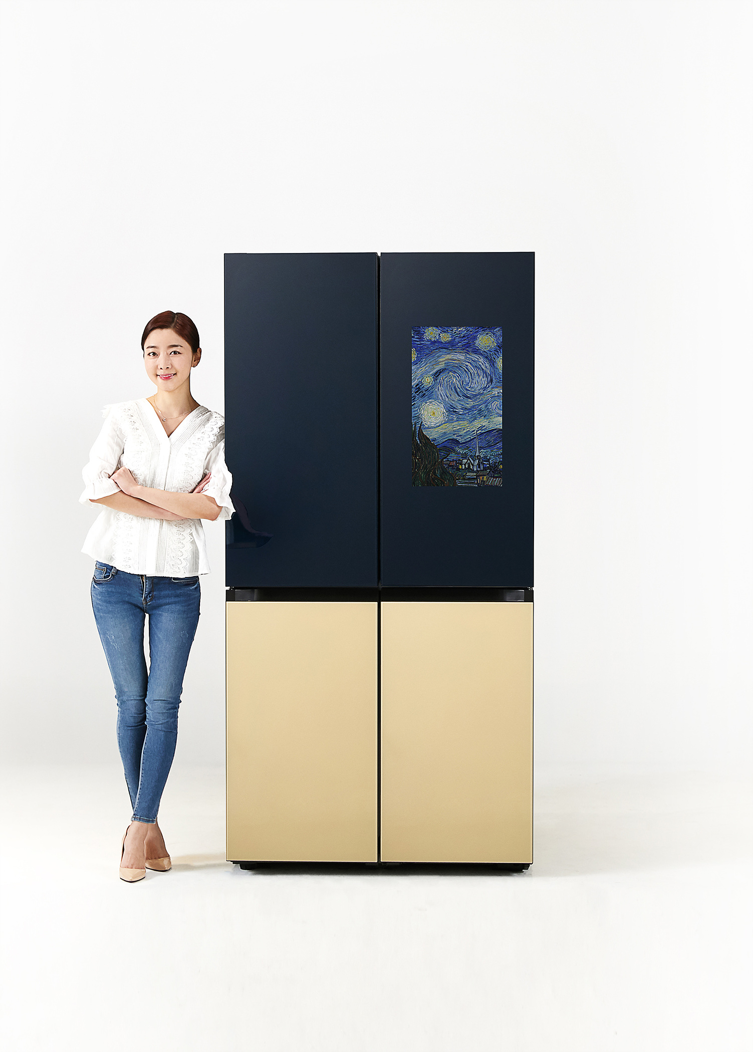 ▲ 삼성전자 모델이 수원 삼성 디지털시티에서 신제품 ‘비스포크 냉장고 패밀리허브’를 소개하고 있다.