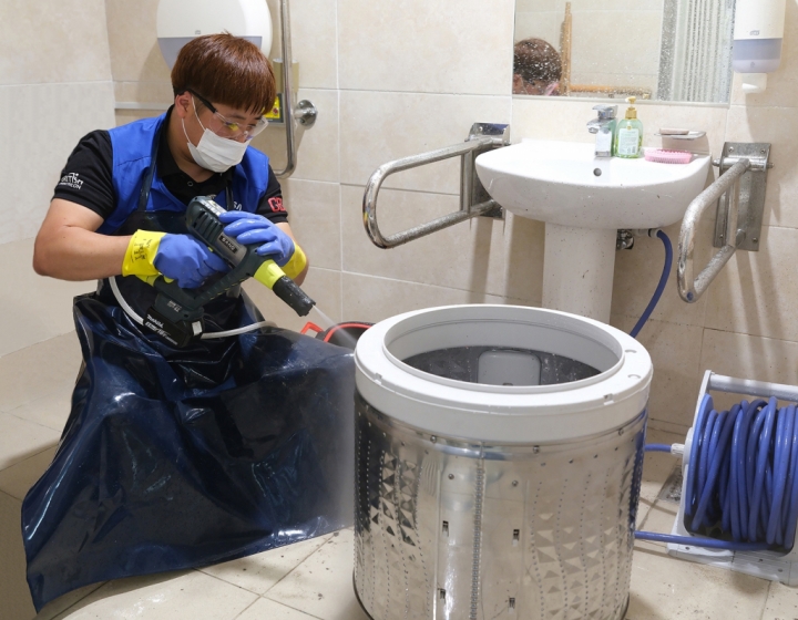 ▲ 삼성전자서비스 임직원의 가전 세척, 점검 재능기부 모습