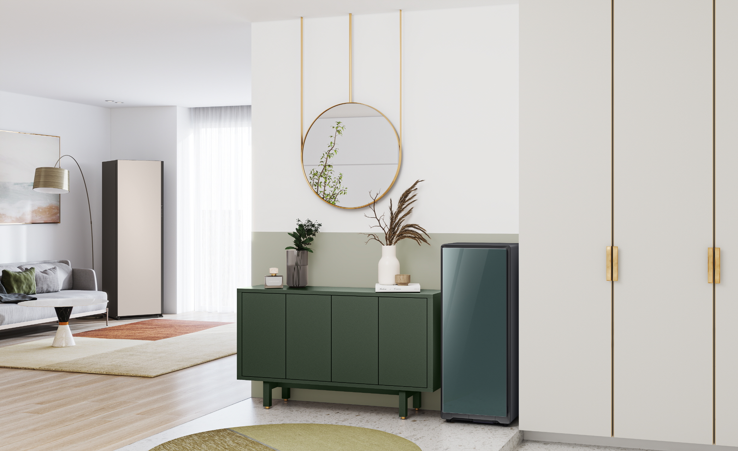 ▲ 삼성전자 신발관리기 ‘비스포크 슈드레서’ 글램 그리너리 색상 제품 라이프스타일 연출 이미지