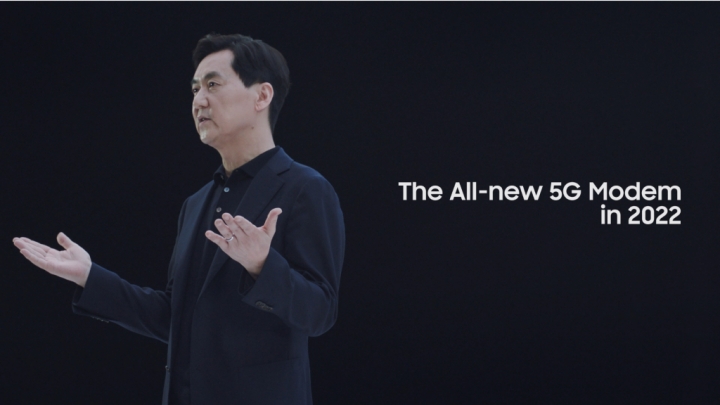 ▲ ‘삼성 네트워크 : 통신을 재정의하다’ 행사에서 삼성전자 네트워크사업부장 전경훈 사장이 2022년 출시하는 고성능 기지국에 탑재되는 차세대 핵심칩을 소개하는 모습
