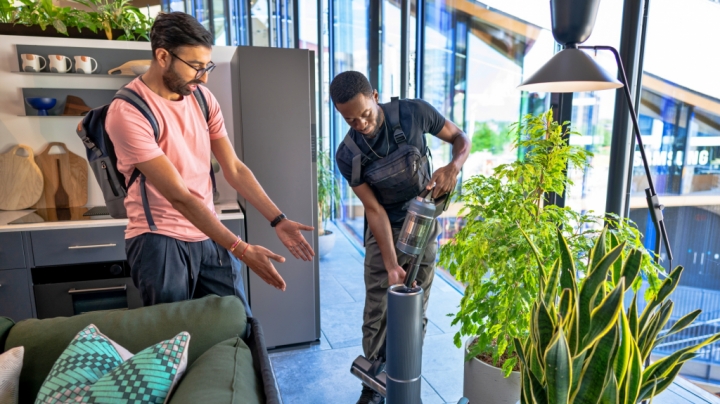 ▲ 영국 런던에 위치한 삼성 킹스크로스 브랜드 쇼케이스에 방문한 소비자들이 ‘비스포크 홈(BESPOKE HOME)’ 쇼룸에서 제품을 체험해보고 있다.