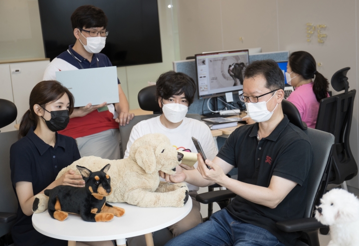 ▲ 2019년 ‘C랩 아웃사이드’ 공모전을 통해 선정되어 지난 1년간 지원을 받은 스타트업 ‘비트바이트’ 안서형 대표(가운데)가 삼성전자 직원들과 협의하고 있다.