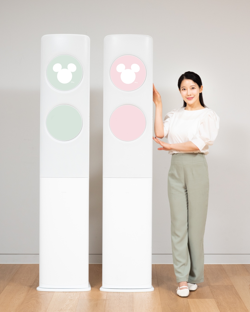 ▲ 삼성전자 모델이 수원 영통구에 소재한 삼성디지털시티 생활가전동에서 디즈니의 미키 마우스 캐릭터를 입힌 ‘비스포크 무풍에어컨 미키 에디션’을 소개하고 있다.