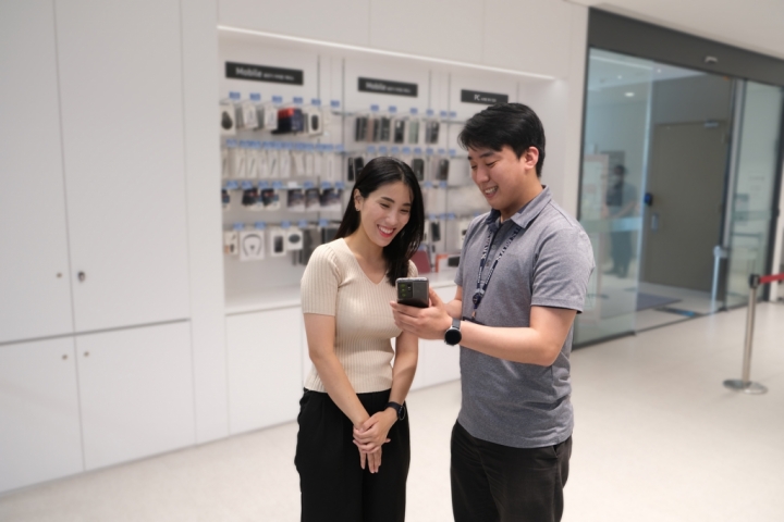 ▲ 삼성전자서비스 수리 엔지니어가 휴대폰을 점검하는 모습