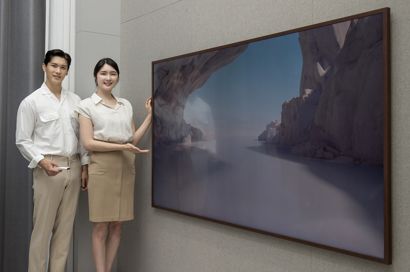 ▲ 삼성전자 모델이 서울 서초동 삼성 디지털프라자 서초본점에서 신제품 ‘더 프레임’ 85형 제품을 선보이고 있다.