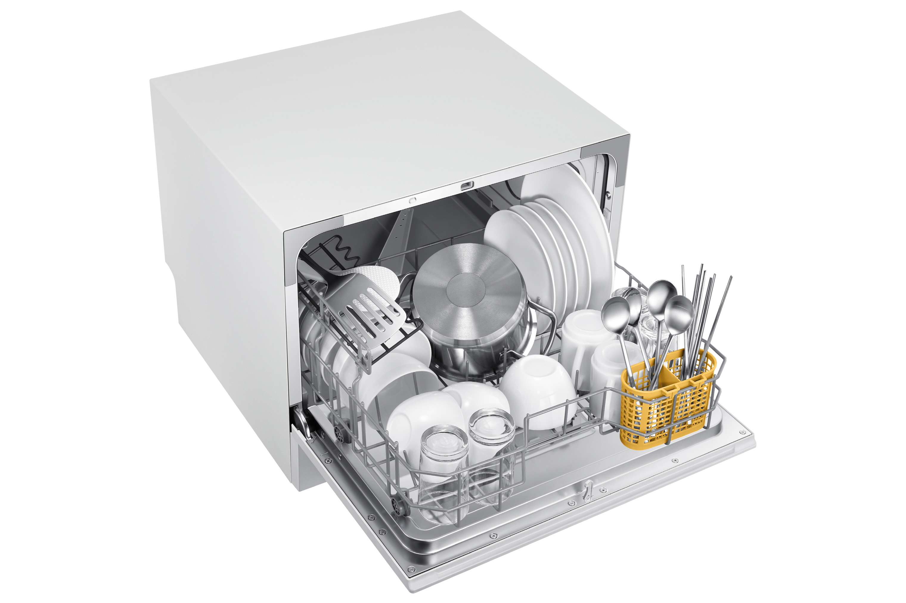 ▲ 비스포크 식기세척기 카운터탑 신제품은 외관 디자인은 콤팩트하지만 내부는 국그릇과 밥그릇, 컵, 수저 등을 4세트씩 넣고도 냄비와 조리도구까지 수납할 수 있는 넉넉한 공간을 자랑한다.
