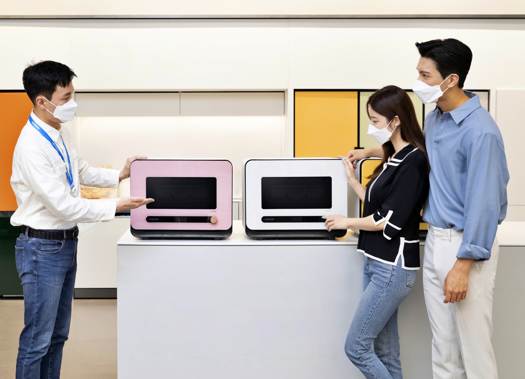 ▲ 삼성 디지털프라자 강남본점에서 판매직원이 신개념 조리기기 ‘비스포크 큐커’를 소개하고 있다.