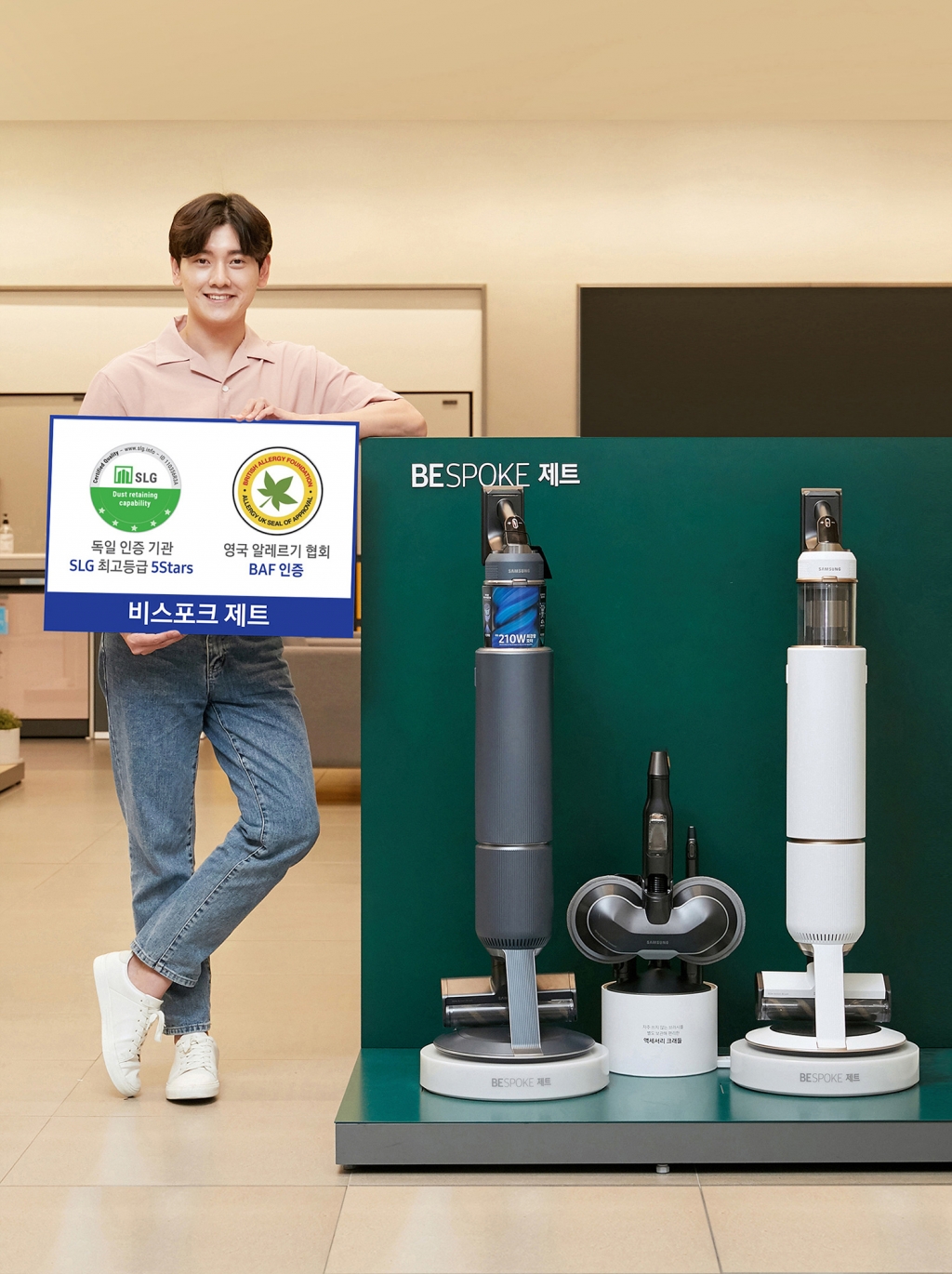 독일 유력 시험·인증 기관인 SLG(SLG Prüf- und Zertifizierungs GmbH)는 비스포크 제트(일체형 청정스테이션 포함)가 0.5~4.2㎛(마이크로미터) 크기의 미세먼지가 배출되는 것을 99.999% 차단한다고 평가해 ‘먼지 차단 능력 인증(Dust Retaining Capability)’ 최고 등급인 5스타(Excellent)를 부여했다.