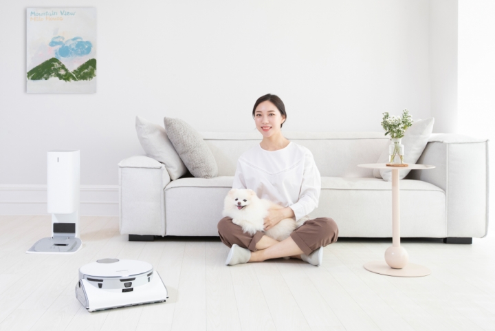 ▲ 삼성전자 모델이 인공지능 로봇청소기 ‘비스포크 제트 봇 AI’를 소개하고 있다.