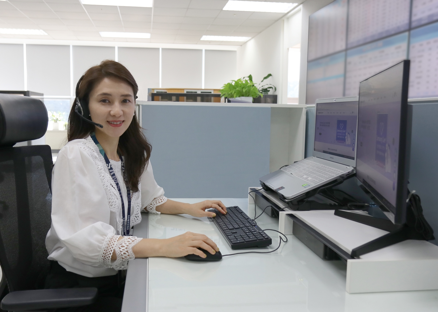 ▲ 삼성전자서비스 상담사가 KS-CQI 기념 촬영을 하고 있는 모습