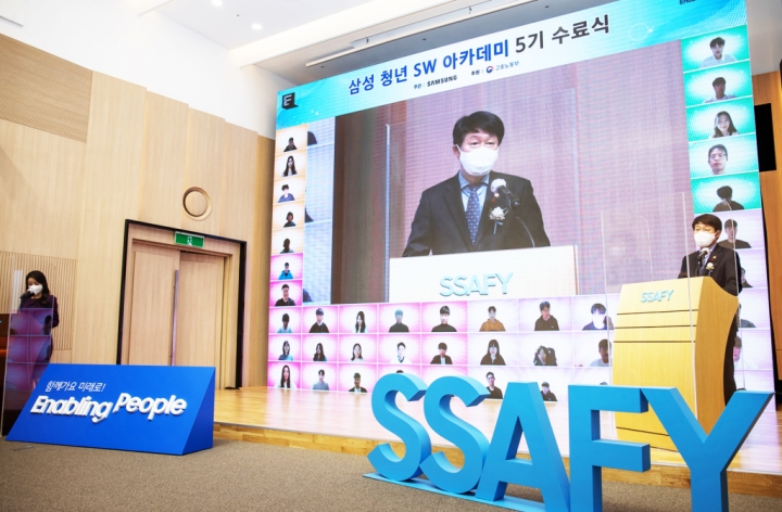 삼성은 21일 서울 강남구 ‘삼성청년SW아카데미(Samsung Software Academy For Youth, SSAFY)’ 서울캠퍼스에서 ‘SSAFY’ 5기 수료식을 열었다.