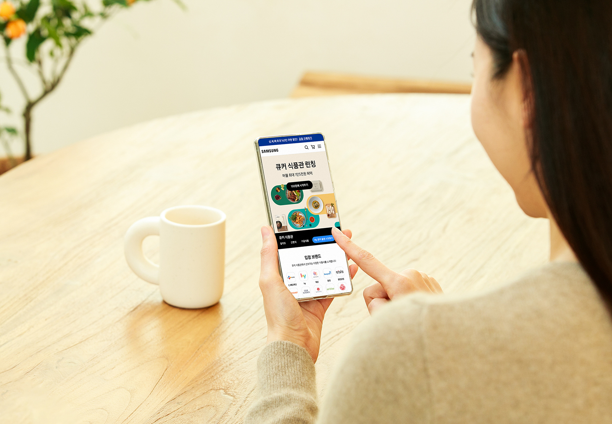 ▲ 삼성전자 모델이 서울 시내 한 스튜디오에서 삼성닷컴 ‘큐커 식품관’을 소개하고 있다.