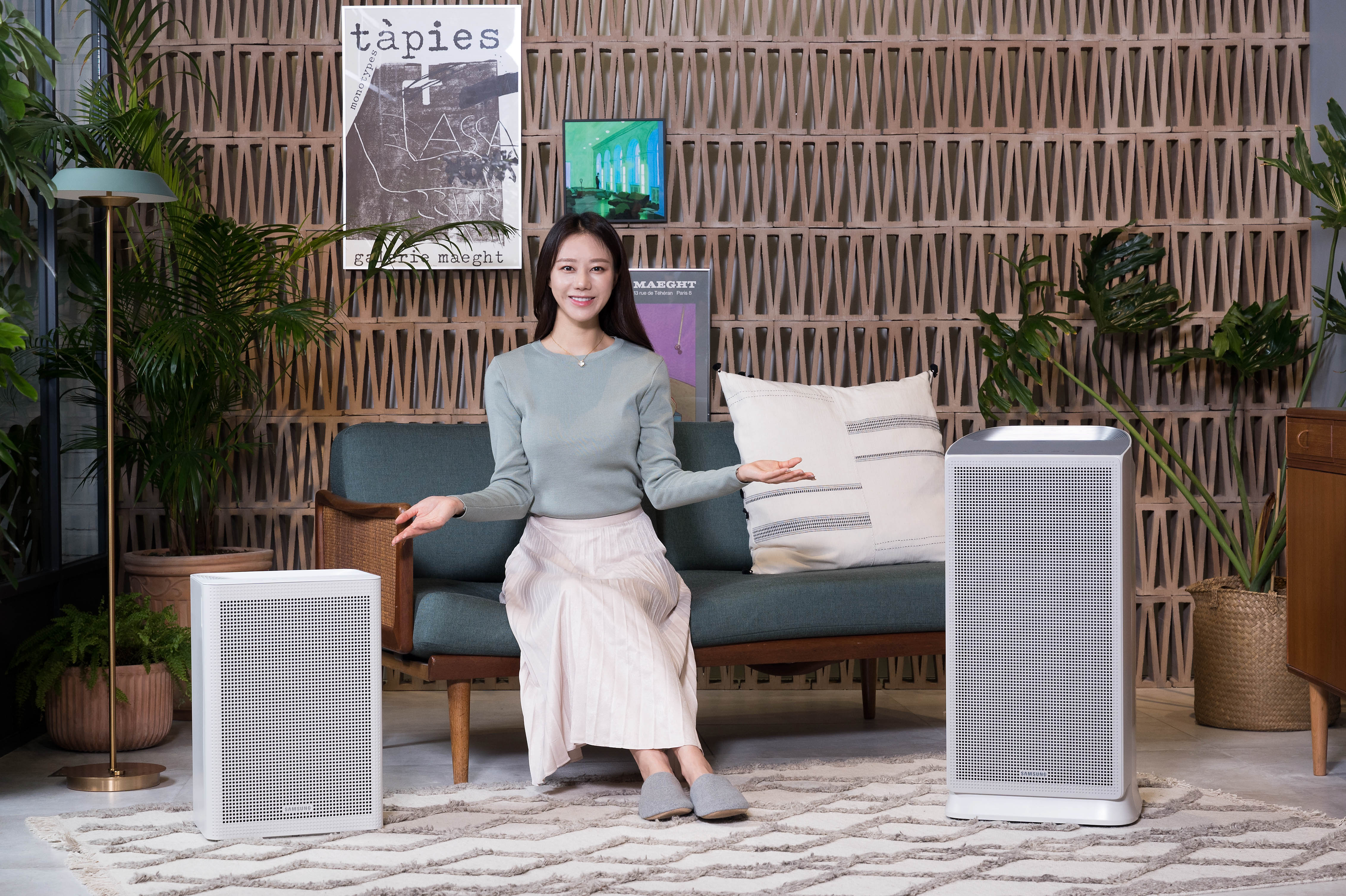 ▲삼성 디지털프라자 강남본점에서 삼성전자 모델이 공기청정기 ‘블루스카이’ 신제품을 소개하고 있다.