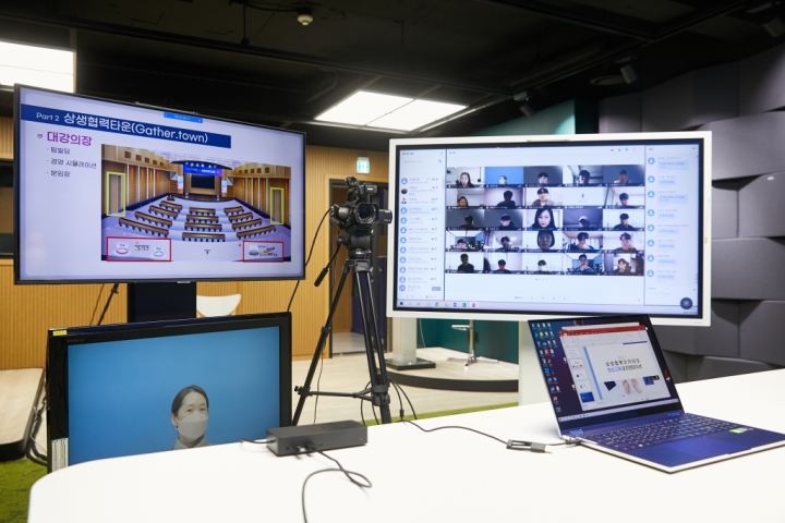 ▲14일 경기도 수원시 삼성전자 ‘상생협력아카데미’에서 ‘2022 협력회사 신입사원 입문교육’ 1차 과정이 온라인으로 실시되고 있다.