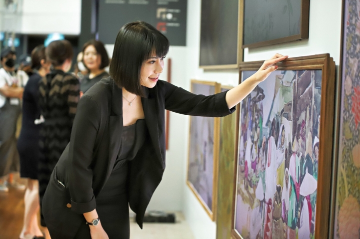 ▲ 삼성전자가 13일 싱가포르 국립미술관에서 2022년 TV 신제품 출시 행사를 진행했다. 행사 참석자들이 라이프스타일 TV ‘더 프레임’을 체험하고 있는 모습. 삼성전자는 현지 프리미엄 인테리어·가구 브랜드인 커뮨(Commune)과 협업해 맞춤형 베젤 4종도 선보였다.
