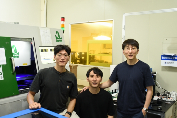 ▲ 삼성전자와 아주대학교가 공동 개발한 초경량·초박형 인공근육 구동기에 관한 연구 논문이 세계적 학술지인 ‘네이처 커뮤니케이션스(Nature Communications)’에 최근 게재됐다. 사진 왼쪽부터 아주대 연구팀의 김백겸, 김동진 연구원과 아주대 팀을 이끄는 고제성 교수.