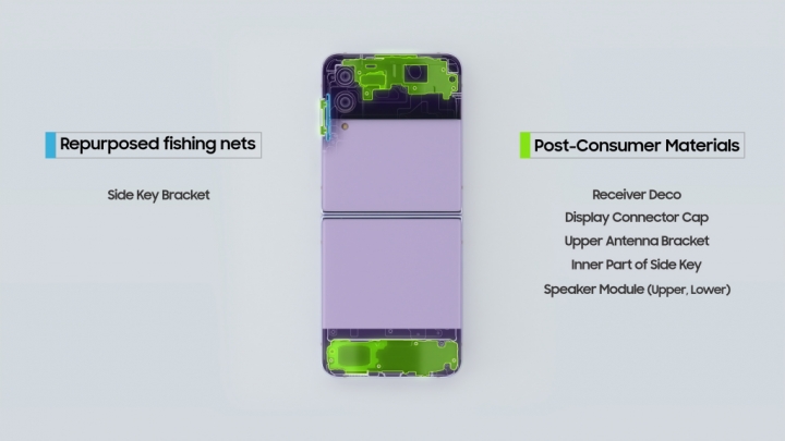 ▲갤럭시 Z 플립4 폐어망 재활용 소재 적용된 사이드키 브라켓