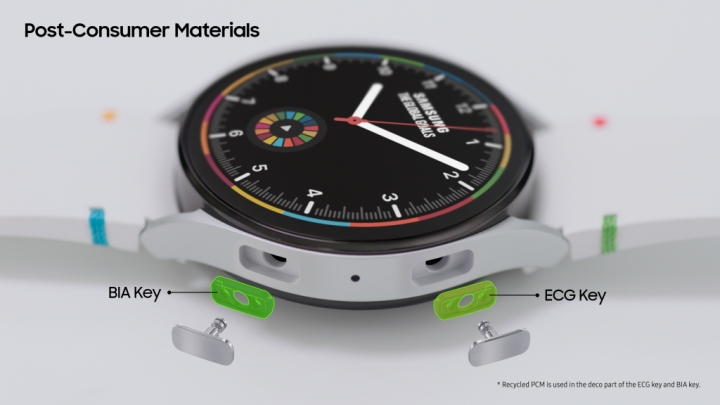 ▲갤럭시 워치5 시리즈 PCM 재활용 소재 적용된 ECG 키 및 BIA 키