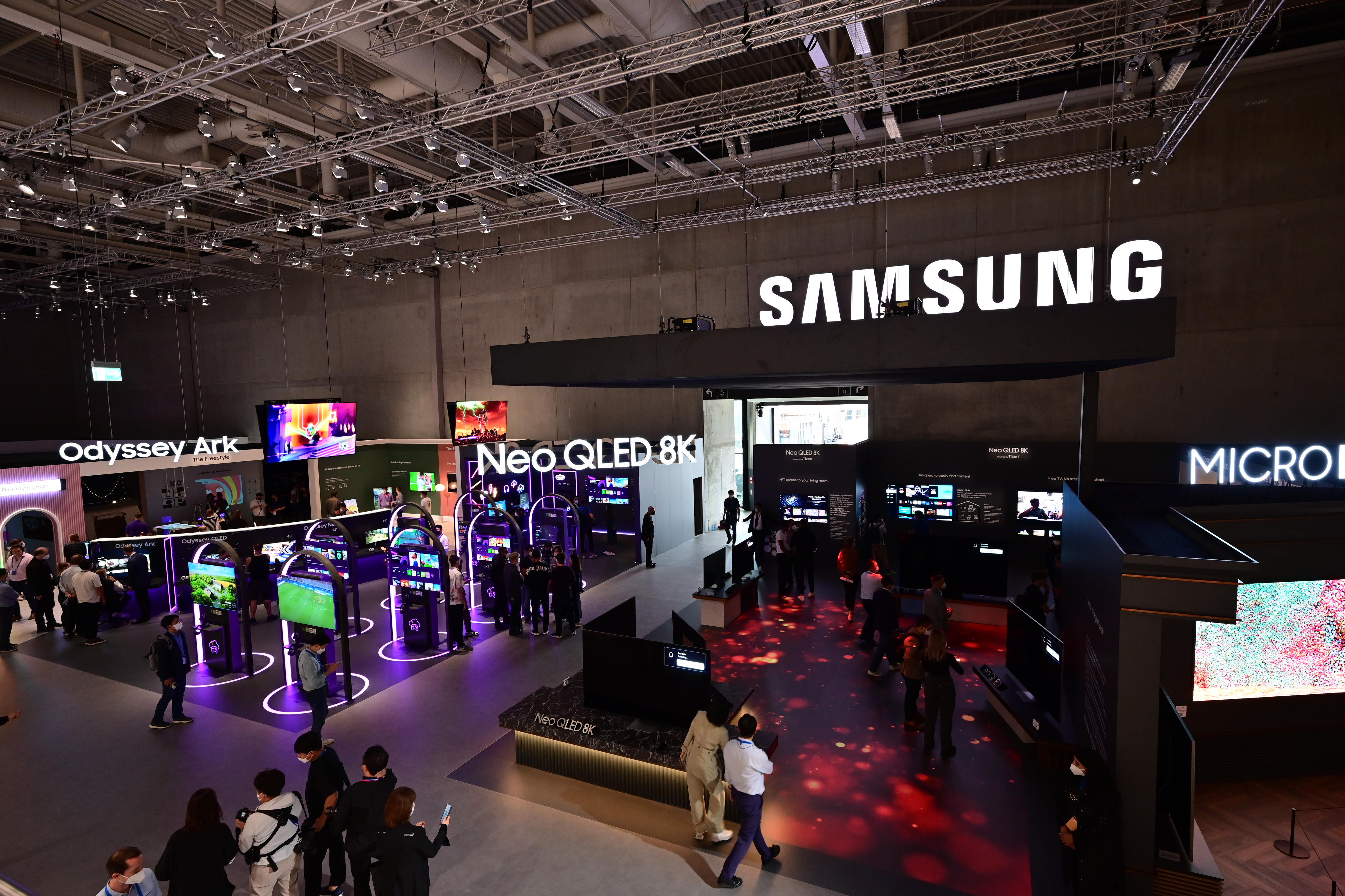 ▲ 삼성전자의 디스플레이 전시 전경. 오디세이 아크(Odyssey Ark), Neo QLED 8K, 마이크로 LED 등 최신 디스플레이 제품이 전시돼 관람객들의 눈길을 사로잡았다.